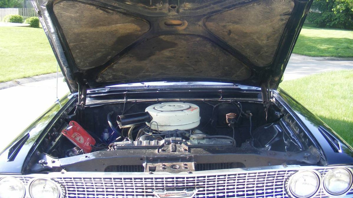 A better look under the hood would have been nice. From what little we can see here, it’s not so wonderful under the hood. What we can see is that there are no power brakes and likely no AC or power steering either. Hopefully, that is a 289 CID V8 and not the 260 V8 that was standard for the first part of the 1963 model year.
