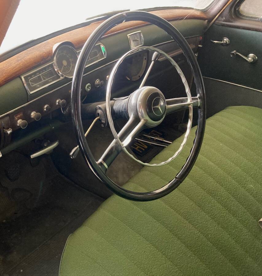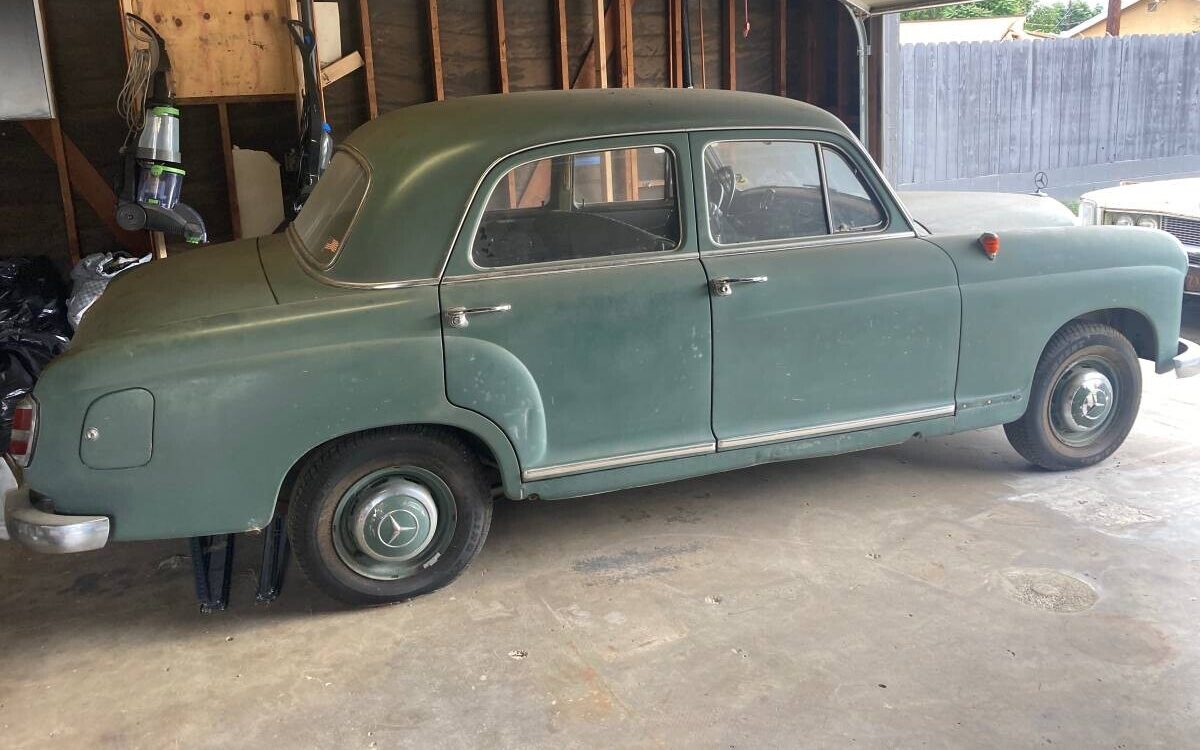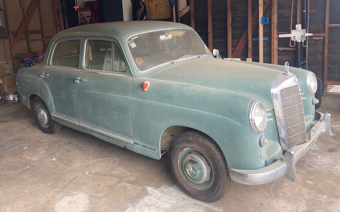 The nomenclature that automakers use is never more confusing than over at Mercedes-Benz. Seeing “190” in the title here can bring to mind the little sister to the 300SL, called the 190SL – a glorious car if a bit sluggish. But Mercedes also made garden variety 190 sedans in multiple renditions. The W121 platform produced from 1955 to 1963 was clothed in a basic ponton sedan body (the SL was also a W121, but a convertible). The platform cradled the 1897 cc inline four-cylinder. But there were 190Ds (diesel), 190s on the slightly longer W120 platform, and then later – on a different platform – 190Cs, and 190Es. Market value differences among these models can be substantial. Here on craigslist is a 1958 Mercedes-Benz 190 sedan, with an asking price of $15,000 firm. We have T.J. to thank for this Teutonic tip! This car is located in Anaheim, California, and has just 31,000 original miles. The car has had only two California owners. Dents are visible in the right rear fender and the front fender is missing a trim piece. A coating of dust hints that she hasn’t been driven in some time.