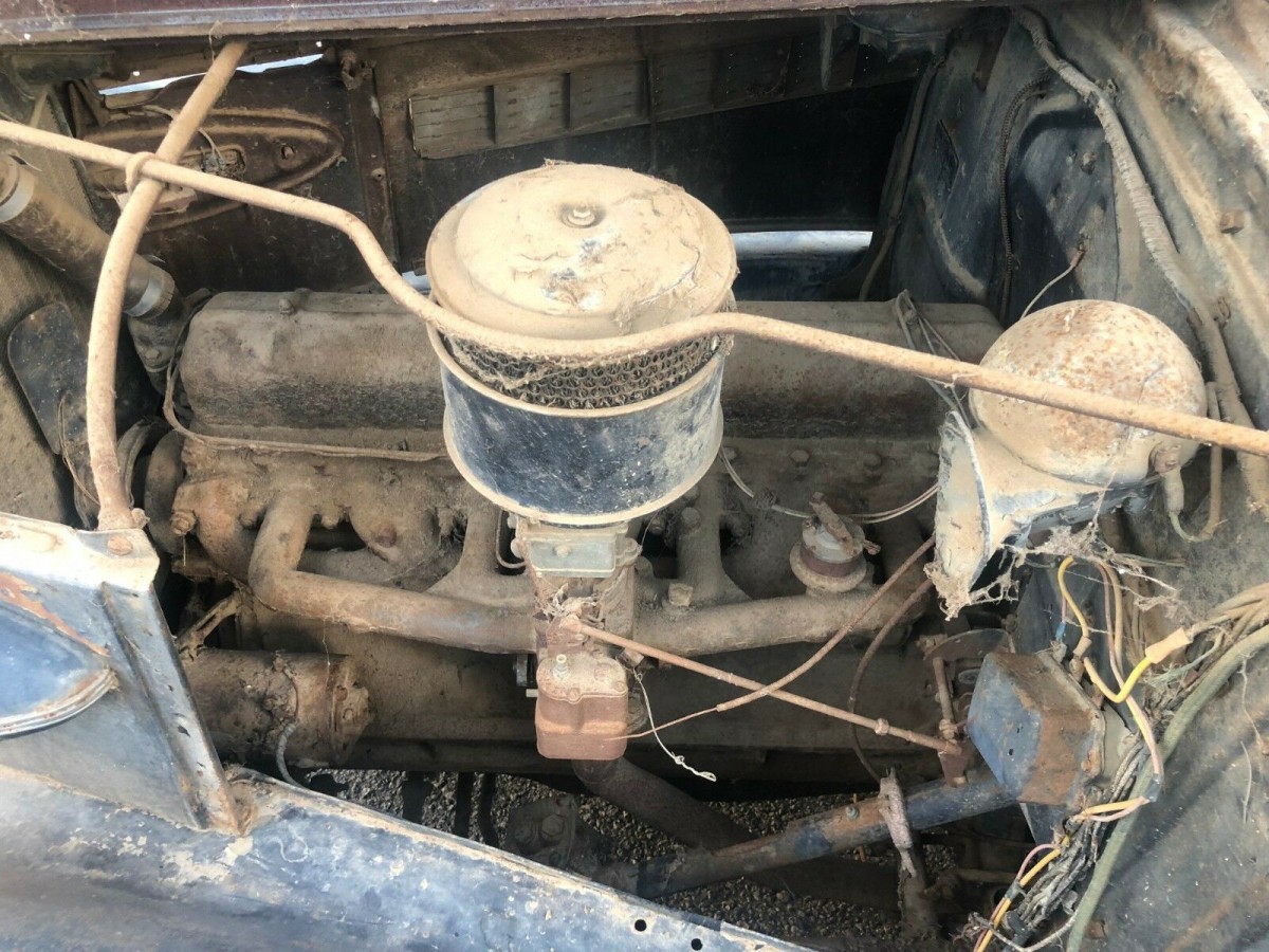 The listing does not say the engine runs or drives, but it does state that the engine does spin freely and the car does roll. Under the hood is a straight 6 cylinder engine connected to a manual transmission. Based on the photos, it looks like all mechanical components are there but it simply needs to be cleaned. Molding and trim parts come with the car and the photos are what you see is what you get.