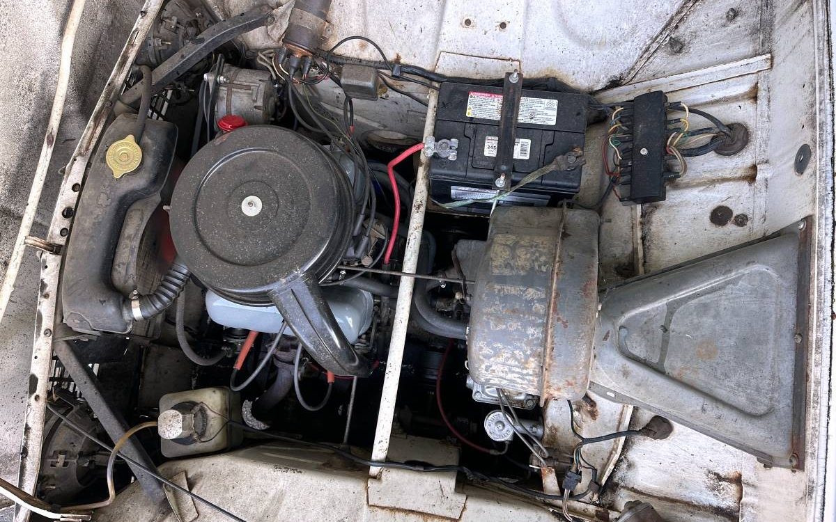 The seller says that they bought it with a friend ten years ago, but the friend handed the car off to the seller, who says that aside from a crack in the windshield, the car is basically ready to go. The interior isn’t perfect (there are some cosmetic defects here and there, including a chunk out of the dash pad), but it looks complete and usable. Notice the column-mounted shifter; this car has a four-speed manual on the column, something that might take a minute to get accustomed to for those of us who have driven a three-on-the-tree.