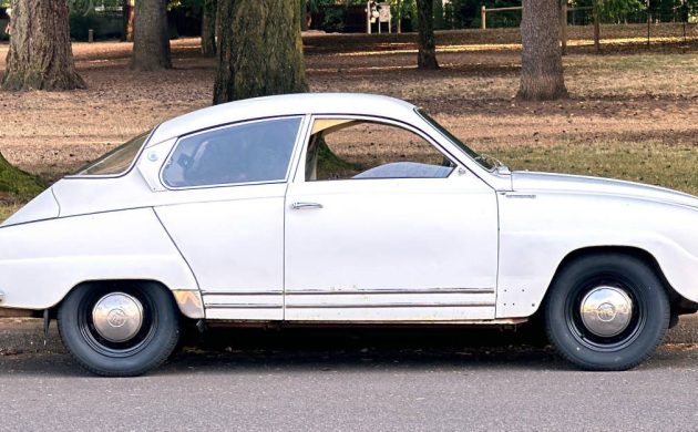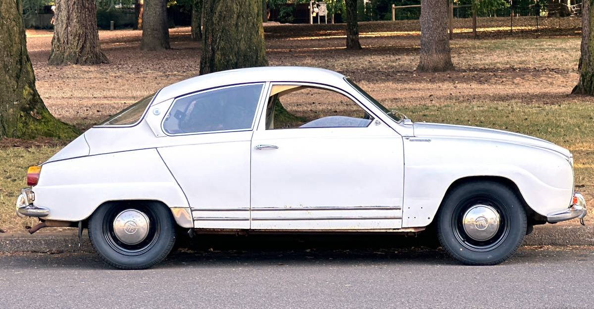 I remember walking by a house with a Saab of this generation on the way to elementary school in the mid/late 1960’s when we lived in Rockford, Illinois. I also remember seeing an Isetta 3 wheeler, Renault dauphine in the neighborhood. The chef’s kiss was a Mercedes Gullwing under an apartment carport when we lived in an apartment there. Cool find!