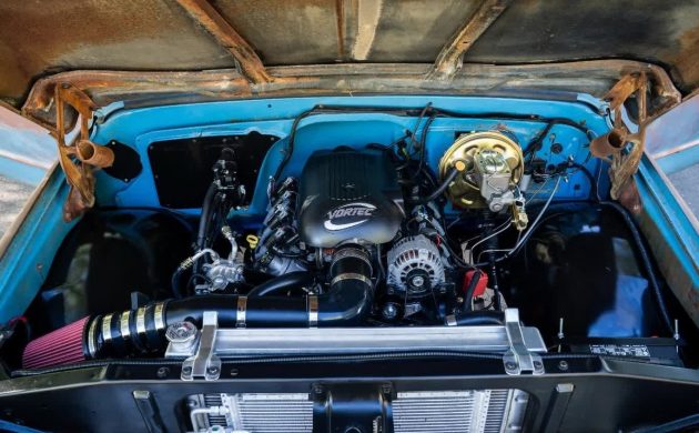 Credit the builder for properly repainting the engine compartment so buyers who want a real paint job can make the rest of the truck match the shiny view here. A nondescript 5.3L (325 cid) LS series V8 should make more power and deliver greater fuel economy than any original motor offered in this rig. For the asking price, I’d expect a zero-mile crate motor with a beefy dyno sheet or a well-sorted Chinese turbo in there.