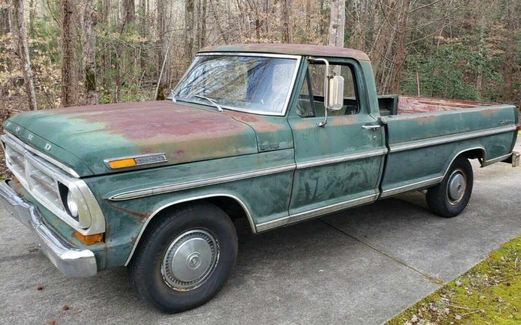 Here’s another classic 5th-generation Ford pickup, except for the fact that this one has a surprise under the hood. It is a 1971 F-100 and can be found here on eBay with a requested opening bid of $7,000. Located in Travelers Rest, South Carolina this truck may look like an old beater, but it would probably win a few races against modern trucks. Ford purists, don’t scroll down!