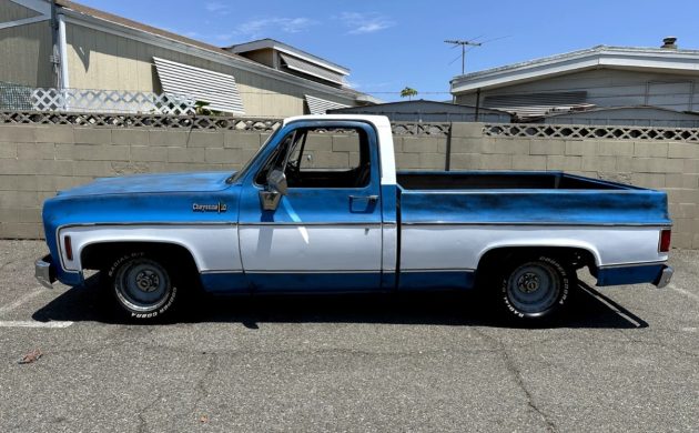 The 1975 C10 Short Bed was part of Chevrolet’s Third Generation C/K range that rolled off the line between 1973 and 1991. Naturally, time didn’t stand still during the production life as the company attempted to keep its vehicles looking clean and fresh. The first owner ordered this C10 in a combination of Hawaiian Blue and Saratoga Silver. It has spent its life in California, which is good news for those concerned about the possibility of rust. The bed exhibits dry surface corrosion, but that appears to be as bad as the news gets. There is no evidence of steel penetration or other nasty surprises. The tired paint isn’t a result of age, but the seller’s decision to impart the Pickup with the type of patina that often occurs following long-term UV exposure. There are a few minor bumps and bruises, but if the new owner wanted to return the C10 to its factory appearance, that would be a straightforward undertaking. Some trim pieces are lightly damaged, but the glass looks nice.