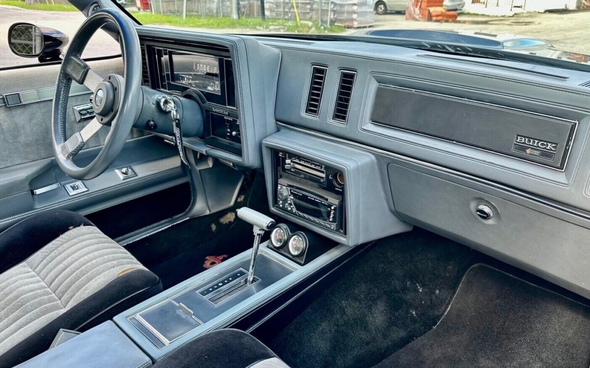 Inside, things look mostly stock, with an aftermarket Stereo and what looks like a black GlowShift dual gauge package added to the console, along with a pillar-mounted instrument. It’s overall well preserved in there, with a couple of minor worn spots in the carpet, but some good news is the A/C is stated to still be blowing cold. We don’t get any pictures from the bottom, but the seller says there’s an aluminum driveshaft, with a 4L60 transmission hooked to the front and a positraction rear end on the back. He’s also accepting offers, so if you’re intrigued maybe the car can be bought for less if you catch the guy on a good day. What are your thoughts on this 1987 Grand National?
