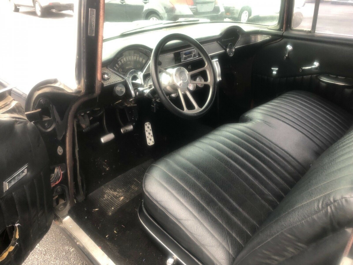 Serious surface? rust on the roof where it sat outside long enough to cook the paint off and then rusted, Seller does not show any good pictures of this in the listing. The seat has that cutout in it most likely done in the late 60’s early 70’s so you could use a hurst shifter not made for a bench seat car, as in not tall enough to clear the bench seat. I believe this to be a 210 with Bel Air side trim.