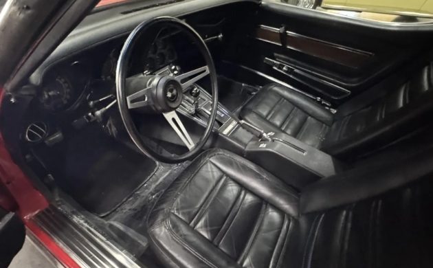 Examining this classic’s interior reveals the second piece of the puzzle that helps this Corvette command a premium price. The 1972 model year was the only time when buyers could order one of these cars with the LT1 small-block and air conditioning. That is the case here, and you can add Black leather trim, power windows, and a tilt/telescopic wheel to the equation. The engine bay shots confirm that the A/C received a compressor upgrade, so it should blow ice-cold. The seller states that this car also features an upgraded stereo, although the original radio is present to be retrofitted if the buyer prefers authenticity. As with the rest of the vehicle, there is little inside this classic that warrants criticism. The leather looks supple and inviting, the plastic is in good condition, and there is no evidence of UV damage.