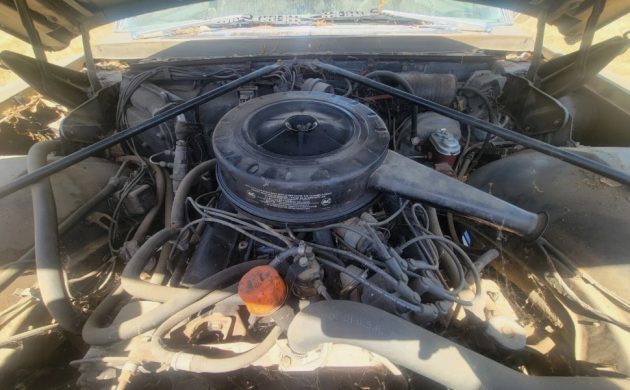 Cadillac facelifted the Coupe De Ville in 1965, eliminating its fins (almost), stacking the headlamps, and growing the rear lamp bezels. But the only engine/transmission choice was a holdover from late in the prior generation – buyers received a 429 cu. in. V8 good for 340 hps and GM’s Turbo-Hydramatic three-speed automatic. The seller notes that this engine turns but the car needs a new starter. That’s probably the tip of the iceberg.