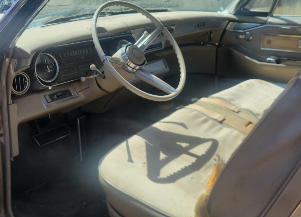 I had a ’65 Calais 4 door, quite a bit rustier than this, but running when I got it. I put a lot into that car, but got it for $850. That was definitely the one that got away. ’65s and ’66s are about 96% identical, there were just a few trim differences. I think they were much better proportioned and elegant than the Cadillacs before and after them. In the ’90s, parts were still really easy to get; I have no idea how it is now, but once it’s running, it’ll take you anywhere. Doing the cosmetic work on this car would surely put you underwater, yet it looks too nice to be a parts car. Make it run and drive it ugly, that’s my advice.