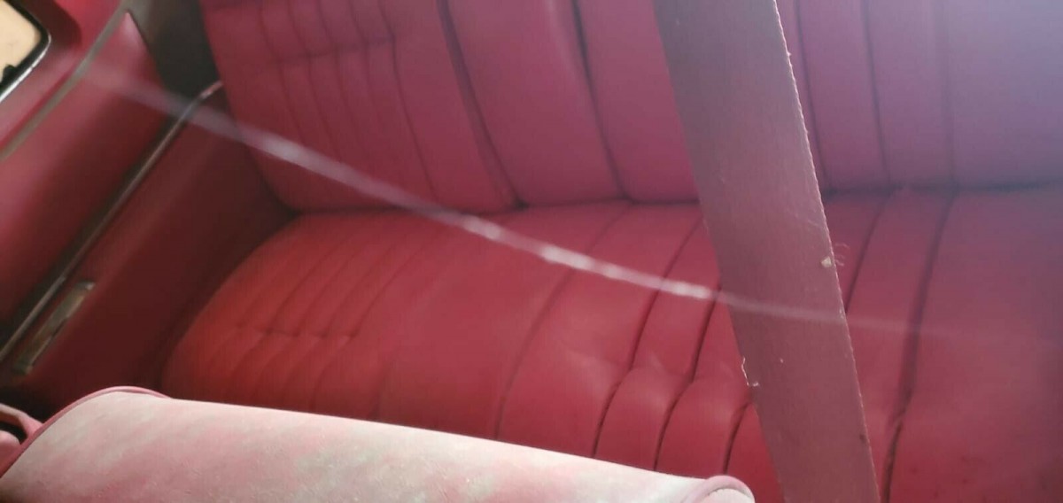 The car is perhaps not as beautiful as the seller thinks given the amount of work that will be needed. All the Tupperware that surrounds the massive rear bumper is either damaged or gone, possibly as a result of a small accident as the chrome parts do not appear to be aligned properly. You might get the red paint on the front of the car to polish up nicely, but the everything south of the back glass is going to need a repaint. The landau vinyl top seems to be okay.
