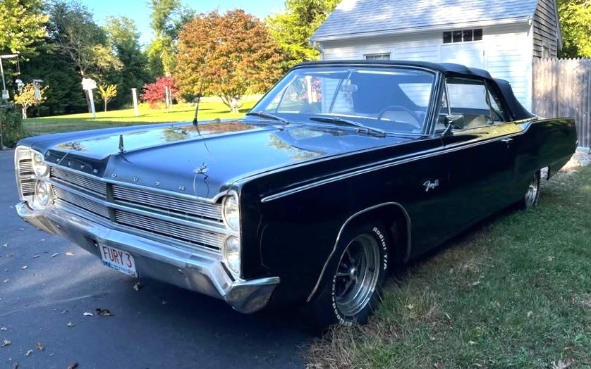 We only get to view a couple of photos spotlighting the interior, and while the instrument panel isn’t in sight, the seats, carpet, and door panels appear to be in more than acceptable condition. No specifics are given regarding the top, but it looks like there’s plenty of good life left for the canvas, and even the plastic rear window shows only minimal fading. There doesn’t seem to be much left to do here, and with $22k invested and an asking price of just $12k, this 1967 Plymouth Fury III convertible sounds like it’s priced reasonably. What do you think?