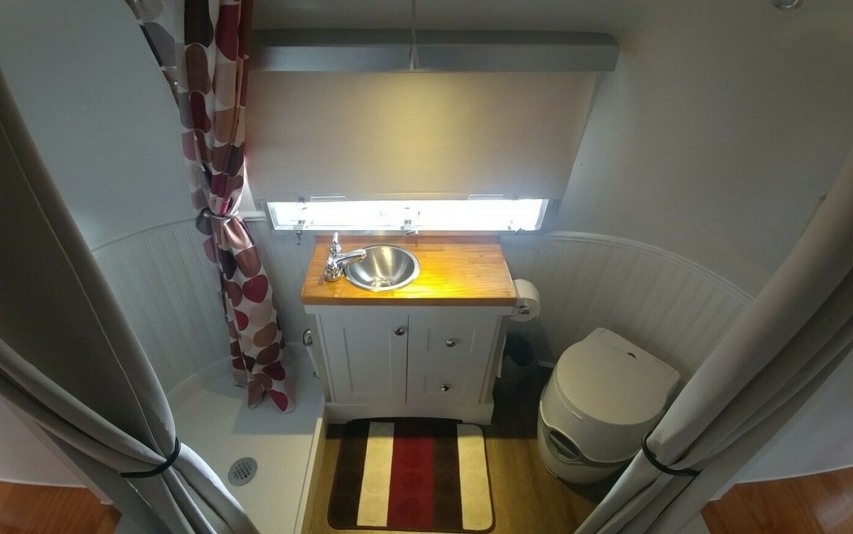 The list of improvements doesn’t end there, with the listing noting that there’s a new 30 gallon fresh water tank and pump along with a cassette-style toilet. The shower features a custom made pan with fully waterproof walls and floor, topped off by a white raptor liner coating. The body does have some dings and dents and the seller notes that he started brushing down the aluminum skin but you’ll have to strip away the clear coat if you really want the shine to pop through. Overall, very minor gripes for what looks like a vintage Airstream that has had a lot of thought put into the final build. I’d love to own a trailer like this, and hole up in it whenever the mood struck.
