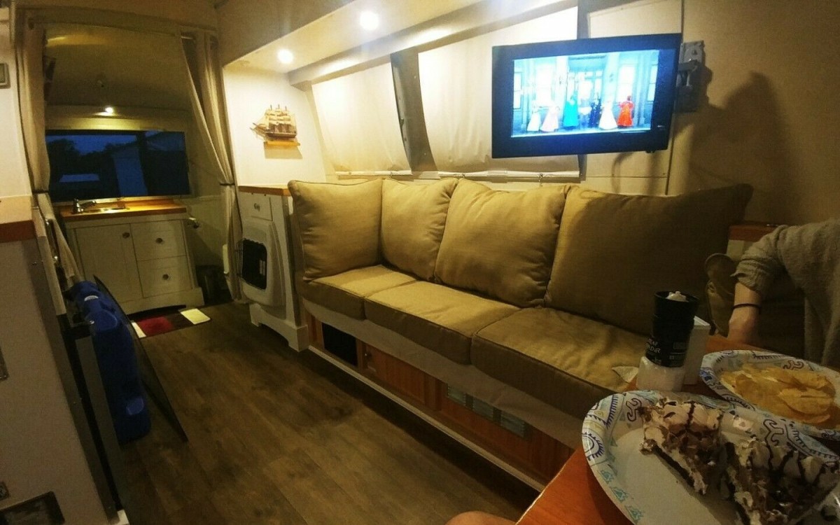 “The Land Yacht designation was typically assigned to travel trailers featuring the highest levels of luxury…” that’s a negative, Ghostrider. Highest trim level was the International. I have had a ’67 Overlander Land Yacht for 34 years. It is not luxurious even by 1967 standards. And that part about “repairing” the floor? Yeah, many a flipper has tried that line. The words you’re looking for are “shell-off restoration”, otherwise you’re in for some expensive surprises. No doubt this thing has had some cash dropped into it, but the buyer is about to drop some more. Axle has a limited lifespan.. When was it last replaced? Was the roof reinforced before that 14×14 hole was cut in it to install that massive AC unit?