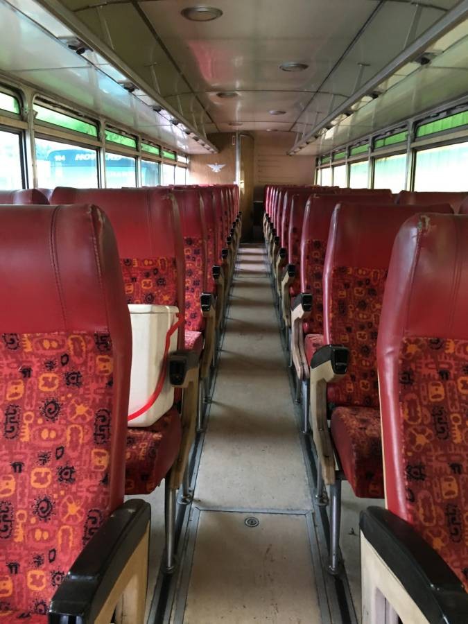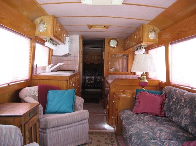 The RV conversion bus is sooo stuck in 1987 with it’s mauve and green colors. It has not aged well.