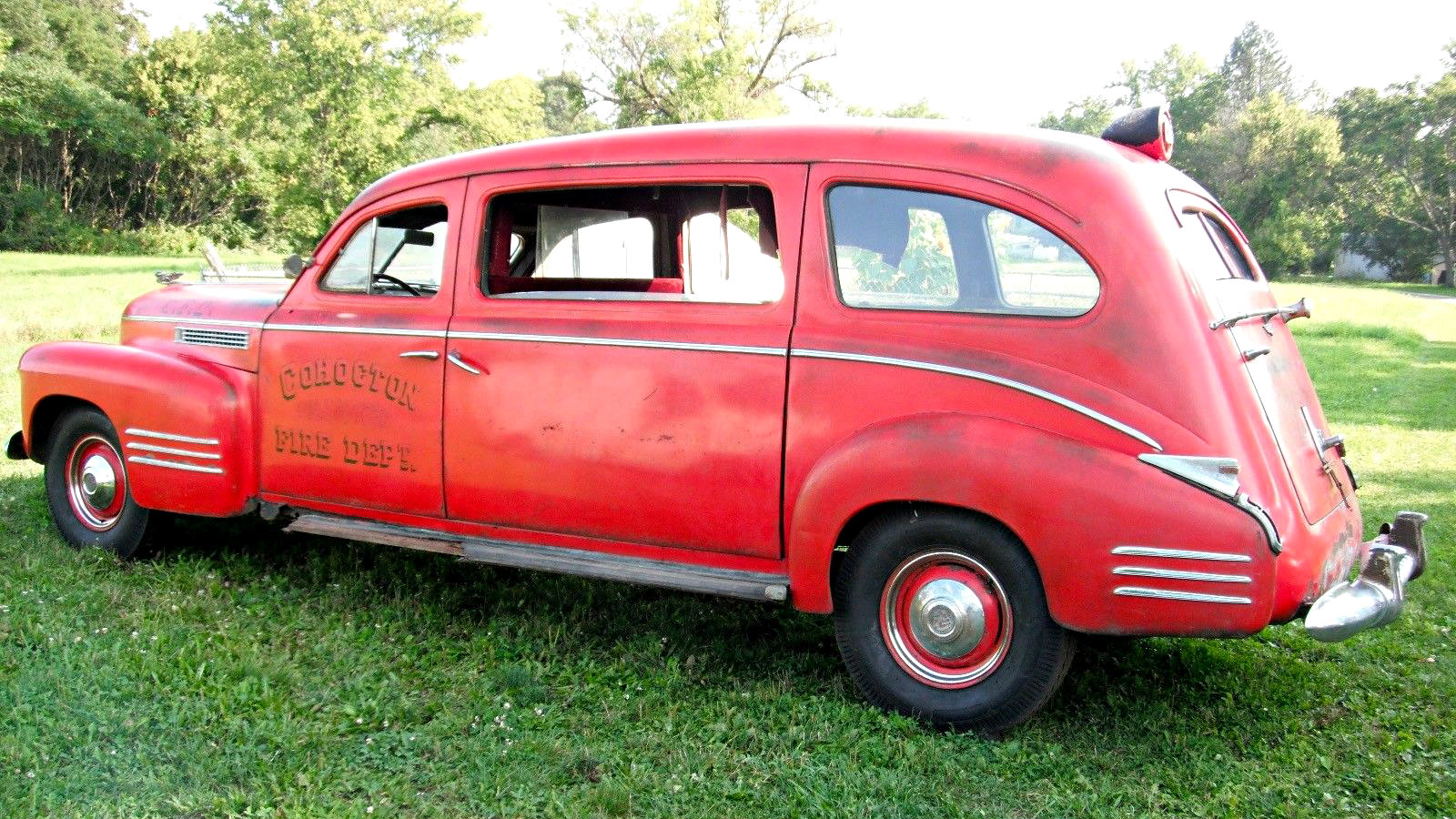 Classic fire trucks, ambulances, and emergency vehicles are a niche market of automobiles that are typically overlooked, and can often be bought on the cheap. Not to say that they aren’t worthwhile projects, as they are rather unique and uncommonly seen machines that can often offer great styling, and be used in a whole new way. All I can think of is the lucky fire crew that had a Cadillac as their emergency vehicle! The Cohocton Fire Department must have bragged to the other local fire stations, as this Caddy was definitely brag worthy. A true Barn Find, this Cadillac was discovered in a barn after many years of slumber where it was then revived and enjoyed on the roads once again. Although revived once, this Caddy has spent the past two years parked needing to be resurrected once again. This unique machine is currently bid up to $3,650 with the reserve not met. Take a look at it here on ebay out of Breesport, New York.