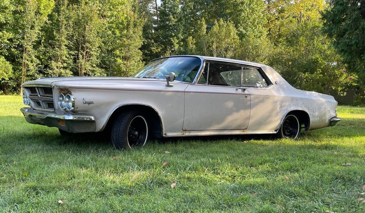 Since the seller has owned this Chrysler, the following items were replaced: the alternator, power steering pump, fuel lines, hoses, voltage regulator, and coil, and then gave it a tune-up. But this work was based on a rebuilt 413 Wedge V8 that is dated from 1965. Before the seller and besides the motor, added items included an Edelbrock manifold, 4-barrel Carter carburetor, and an upgraded camshaft, plus a rework of the brakes. All that being said, the car runs and drives but is not registered to go out on the roadways – yet.