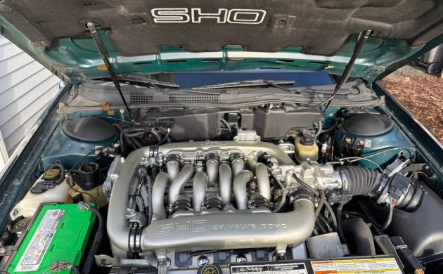 Ford delivered about 13,800 SHOs in 1994, of which 82% came with an automatic transmission (such is the case with the seller’s car). SHOs had some adjustments to exterior body panels, such as the front fenders and bumpers. Bucket seats were standard, with leather optional (also in the seller’s car). The sellers of this survivor have owned it since new and have just put on 70,000 miles in 32 years.