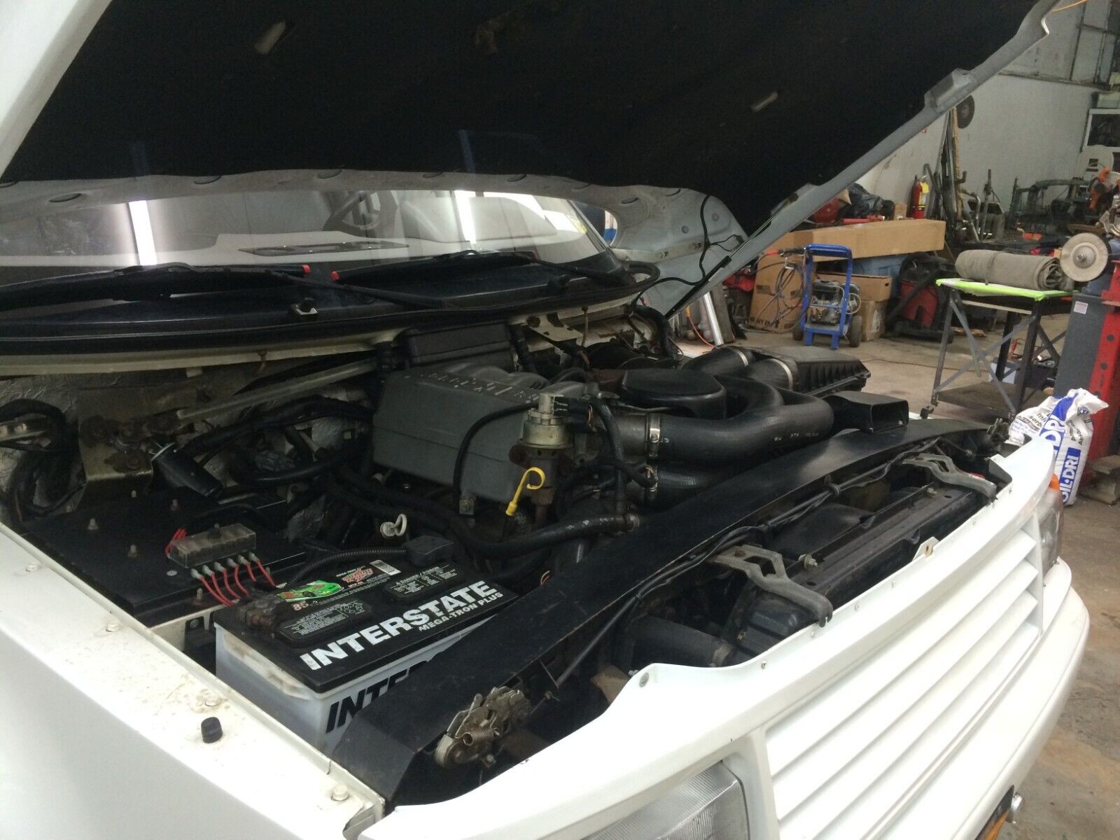 Today, the Laforza often shows up like this, as a vehicle half-way between project status and driver-ready. I don’t know if this is because there’s a fatal flaw that prevents it from becoming a completely restored example or if most current owners simply know it doesn’t make financial sense to bring one all the way back from the brink. One of the last times we saw a Laforza come up for grabs, it came with its own parts rig, so that tells you something. The interior of this Laforza is in respectable shape, with loads of leather-wrapped surfaces and woodgrain trim still presenting well.