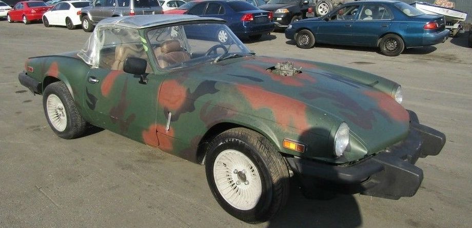 With a name like Spitfire, you’d expect it to look a bit fierce and even intimidating. But most of them are nicely restored drivers with wood-rimmed steering wheels and seat covers made from the wool coats of English sheep. Not this one: a 1979 Triumph Spitfire has turned up at one of our favorite sellers of donation vehicles here on eBay and to say it looks ready for a stunt double role in Mad Max is an understatement. It’s also cheap: bidding is at $320 with just over a day left.