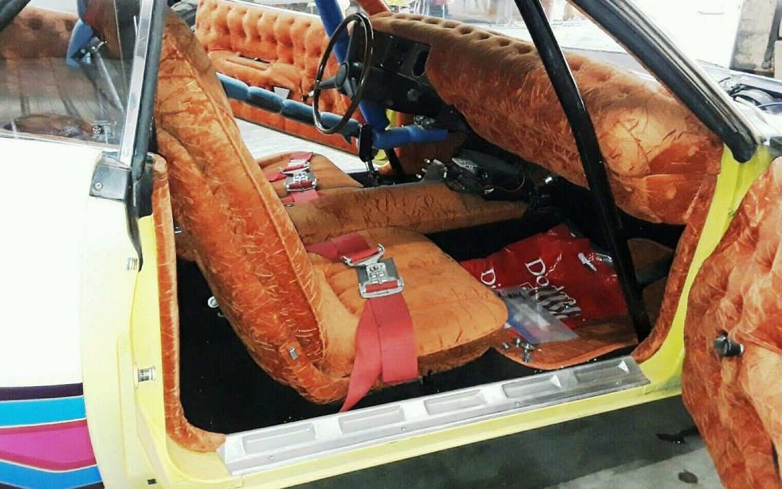 I had often heard that back in the 70’s Liberace was a drag racer. I guess that interior proves it.