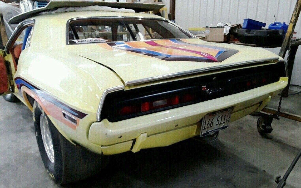 One blurry engine shot is all we get, either from a time before the yellow paint, or showing a yellow that’s nearly lost its color due to sun exposure or a fade-to-white paint job. While the factory 440-6 is long gone, the current 440 setup should make this yellow E-body stand at attention. Nothing in the description suggests anything less than ferocious straight-line acceleration. With 440 cid (7.2L) of displacement, 12:1 compression, solid lifter cam with 0.625″ lift, built automatic transmission, and 4.56:1 gears, you better have the steering wheel pointed straight ahead when you lower the boom on this sonic yellow show car.