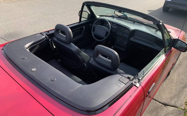 Now, I could be wrong since the seller doesn’t mention it, but I believe the XR2s are factory turbocharged, which is another way these funky convertibles stand apart from their rival from Mazda. The irony, of course, is that the turbo’d 1.6L engine is lifted from the very Miata it was competing against, with 132 horsepower channeled through the front wheels. Take note of those alloy wheels – they’re unique to the 1994 edition of the Capri, replacing the goofy three-spoke design that was all the rage in the 90s vehicle aftermarket. The 1994 models also received updated front and rear bumpers.