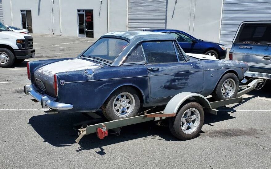 This Tiger Mark I was parked in L.A. for twenty-some years and it sounds by the listing as if the seller has had possession for at least some time now. While the Azure Blue finished body is a bit rough looking, closer inspection reveals that it appears to be sound overall, including the floor pans. It is stated that the seller pulled this two-seater apart to powerwash away the accumulated years of dirt and he has all of the parts for reassembly except the tool kit and its strap. Good to see is the presence of the removable hardtop, its boxy profile and slanted C-pillar actually enhance the Alpine’s lines, it looks like no other similar-era sports car IMHO.