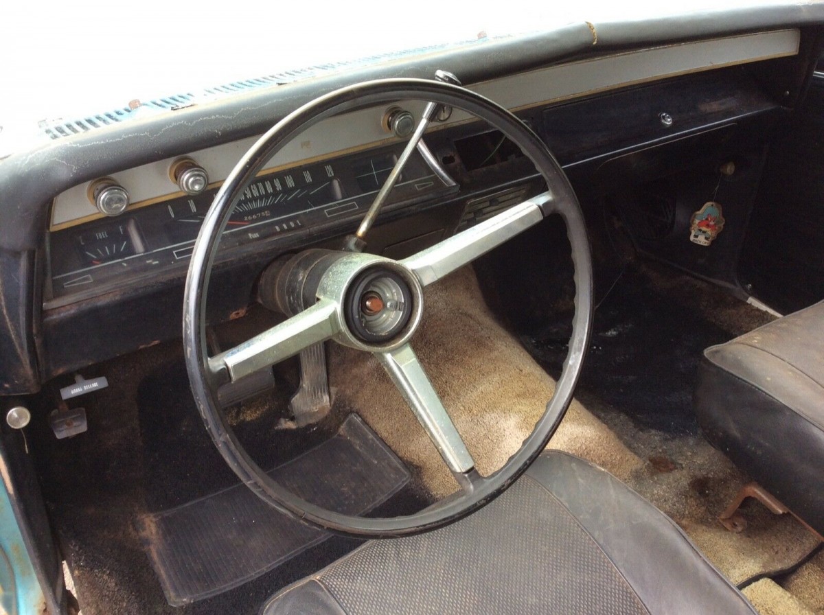 Stuff like this is laying around properties all over my region. I like that it is a “post coupe,” which makes for a much more solid base. I’ve had two Buick Specials from this year that had doors that shut like bank vaults. With this much rust the seller is dreaming on price. Something like this could be “well bought” in the $700 to $1000 range. And then only if I had a local source for the front clip. The Cutlass wheels and bucket seats are actually a negative to me. I’d rather see the bench inside and some steelies/poverty caps on the outside.