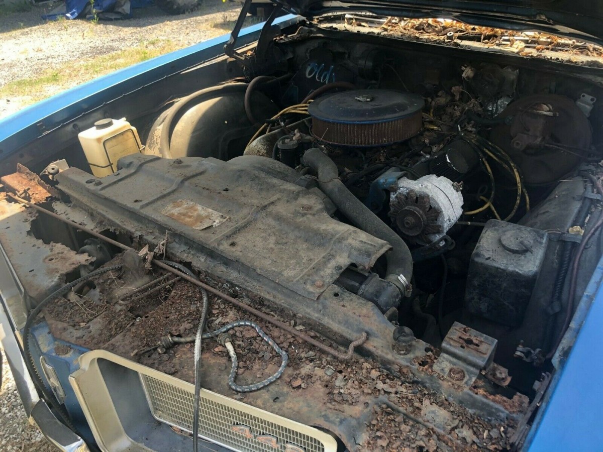 The Oldsmobile sends mixed messages when you examine the photos. There is rust visible in some of the lower body extremities, but some look remarkably clean. There is plenty of evidence to suggest long-term exposure to a damp environment, with heavily corroded trim rings on the wheels, a rusty trunk lid, and a rotten rear bumper, all painting a worrying picture. The owner doesn’t provide any information on the state of the floors or frame, but the trunk pan looks like it has rusted beyond repair. The soft-top is shredded and would offer no protection at all. If the car has been sitting in an exposed area, moisture can soak the carpets and accelerate any rust development. Lifting the hood also reveals that the radiator support has been eaten away, which doesn’t add many good vibes to this classic. The blue paint isn’t original because the trim tag indicates a color code of 48. That means that the 442 rolled off the production line wearing Sequoia Green paint. The owner advises potential bidders to organize an in-person inspection, and I believe that this would be a smart move. If the frame is sound, replacing rusty floors is possible. Parts are available, and aren’t particularly expensive.