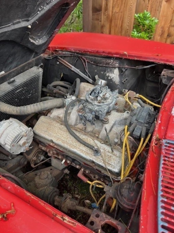 The list of required work extends to this Corvette’s interior, which needs nothing less than a complete retrim. The Black vinyl has deteriorated beyond the point of no return, the carpet is tired, and the Teakwood wheel has cracked. The first owner splashed $176.50 on an AM/FM radio, which appears to be the only creature comfort. The only viable option for the buyer to consider would be a trim kit, which will add around $2,000 to the restoration budget.
