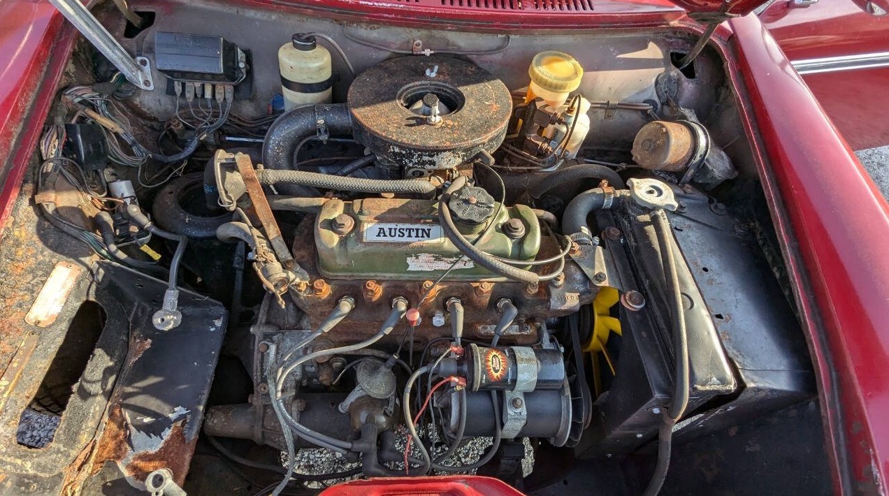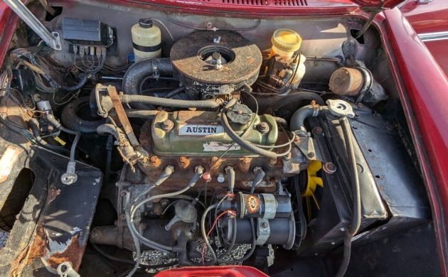 The car that became known as the Austin America was marketed globally wearing a range of different badges. It was popular in its home country but was also assembled for local sales in a wide selection of nations including Australia, South Africa, Portugal, and Yugoslavia, to name a few. This 1969 example is an unmolested vehicle that was ordered by its first owner in Damask Red. Its history is unclear, but we know it has hibernated for a few years due to a mechanical malady. The paint looks surprisingly respectable and may respond positively to polish if the new owner wishes to protect its survivor credentials. The great unknown lurks below the surface, because there is no indication whether there could be rust issues for the buyer to address. However, the company was very particular about its rust-prevention strategies, and with the car recently emerging from dry storage, the visible surface corrosion in areas like the engine bay might be the worst of its problems. The trim is in good condition, and the glass is clear.