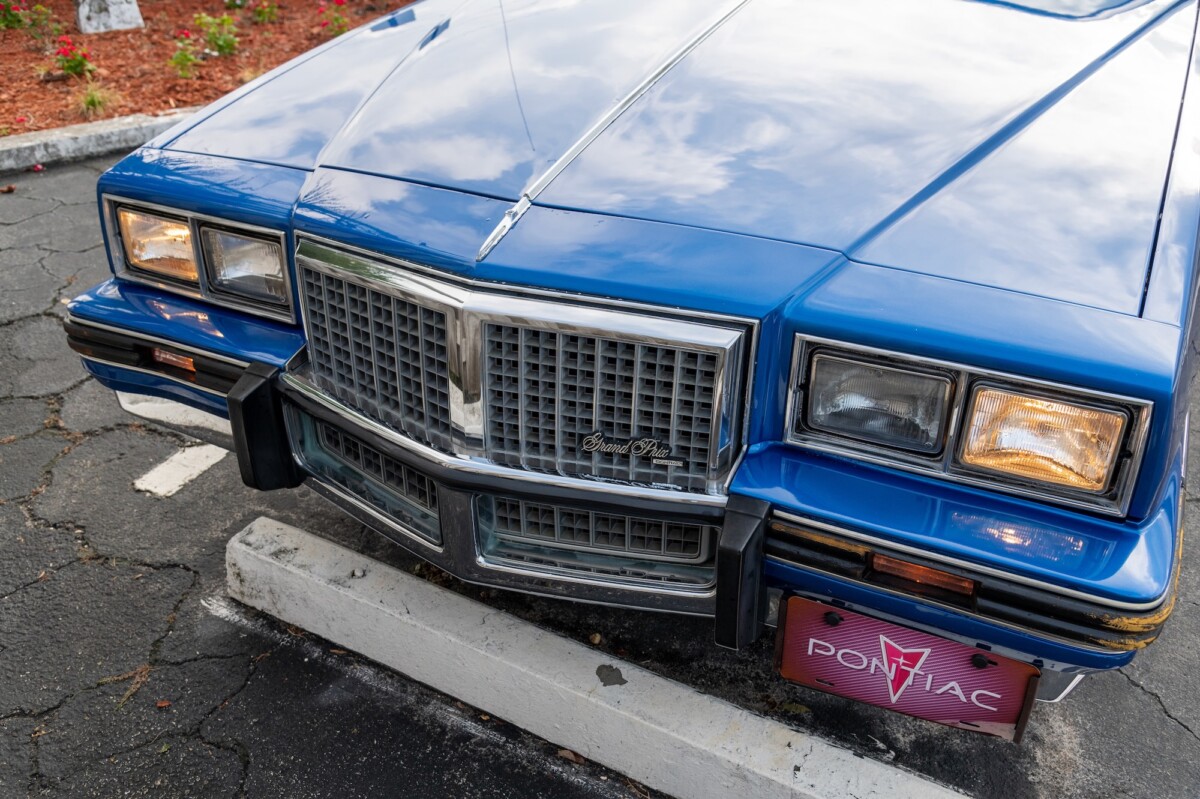 Very nice example of a mid 1980’s Grand Prix. Color combo of blue, with a smidge of chrome accent trim, and the black center torque-thrust style wheels, really set it off.