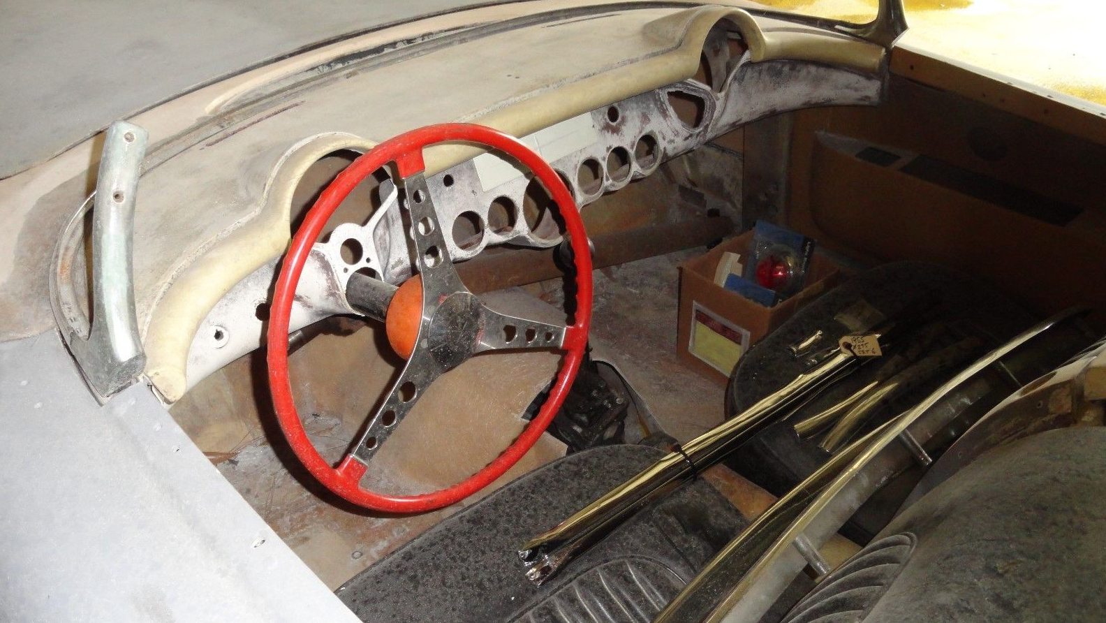 Can any of our body experts weigh in on how the repairs look to their eyes? I’m not a fiberglass expert, but I suppose it can look fairly ugly/muddy even after repair. The seller says the chassis is solid, and “…very nice,” which is reassuring that despite the car’s tired appearance, it may have been stored carefully but just received some bumps and bruises over the years. It is far from stock, with its original motor long gone. The seller does claim many spare parts are included that aren’t pictured, which hopefully includes the top portion of the windshield frame.