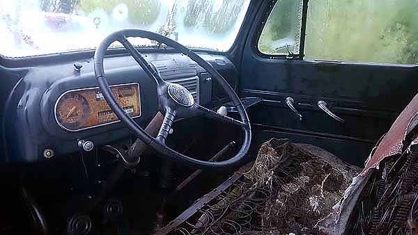 Differing from the Ford counterpart in mostly exterior trim, this M68 has most of the trim intact. It has very little rust. The rear fenders are missing. Replacements can be sourced from an F series truck of a similar year. The floor boards have minor rust and while the seats don’t look too comfortable, seats from an F series, or reupholstering, can remedy that. With some time and effort, this truck will clean up nicely.