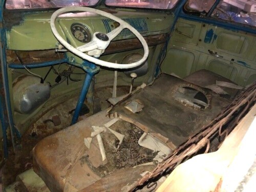 The Bus has clearly seen some things in its lifetime, as it’s effectively trashed in places. However, there’s also plenty of good news, including that the frame is said to be in good shape with just surface corrosion, and that the engine still runs, albeit with a remote fuel source hooked up. That’s to be expected if you don’t want to suck all sorts of old junk from the gas tank into the engine. The interior will need total restoration, just like the rest of the car, and some of the Bus-specific components have gotten hard to find. Fortunately, with a robust network of air-cooled enthusiasts still occupying almost every corner of the globe, you should be able to find spare parts without issue.