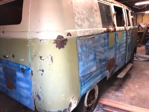 The seller further notes that the Bus rolls and steers but warns us not to get attached to the wheels shown in the pictures as it sounds like he’ll be keeping those wheels and the new tires they’re mounted on. You’ll still get something to roll on, but it likely will be quite a bit older than what’s shown here. There are no rear seats, either, which is one of those hard-to-find items. The seller does note the front and rear bumpers will be included, and that you’ll have to bring your own elbow grease to continue stripping off the awful blue paint. The factory color combo is quite attractive, and this Bus will look beautiful when it’s done.