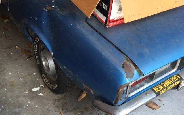 The current owner removed the Camaro from storage in a garage. It had occupied that spot since 1991, and it is a complete car. It began its life finished in Butternut Yellow, but at various times it has also worn Black, along with its current shade of LeMans Blue. The owner states that there is minimal rust in the vehicle, which is a refreshing thought when considering an early pony car project. There are a few spots in the front floors on both sides, but there is a replacement front floor for the driver’s side included in the sale. There is a single hole in the passenger side front floor that is said to be about the size of a ½-dollar. This should be able to be repaired with a simple patch. The remaining floors are said to be in good condition. The rear tail-light panel has been replaced, but this is currently only tacked in place. There is a new right-rear quarter panel included. The buyer will also receive a new grille, new front and rear bumpers, and a complete rubber kit. The glass is all in good condition, and all of the trim and lights are present.