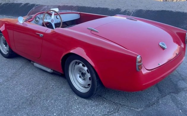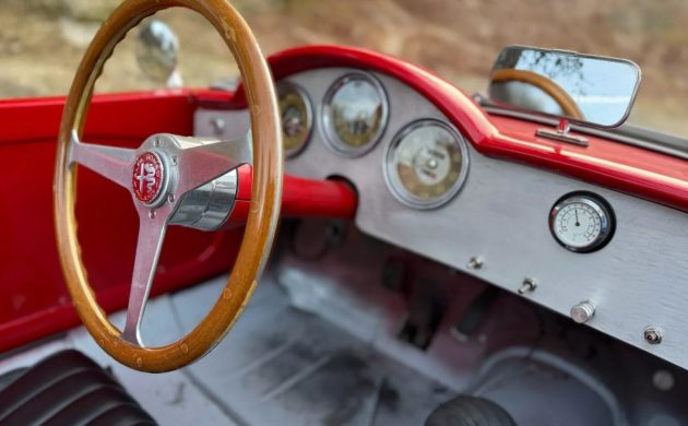 The 1959 Giulietta Spider was an elegant sports car that won immediate acclaim for its styling. Our feature Alfa has undergone a dramatic transformation that makes it look more like a road-bound racer. The bumpers are gone, the fenders feature enormous flares to accommodate wider steel wheels, and the chopped frameless sculpted windshield would look more at home on a track-day car. However, the Spider is nothing if not striking in dazzling Red. The seller is candid about its overall condition, indicating that the paint has a range of small imperfections that are consistent with a vehicle that has been enjoyed as its creators intended. I believe that the vehicle received new floor pans during the build, leaving a couple of small spots under the back as the only penetrating rust. The wheels, side exhaust, and Dzus fasteners retaining the hood and trunk lid add to this Alfa’s sense of purpose.