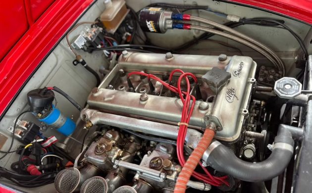 Alfa Romeo equipped the 1959 Giulietta Spider with a 1,290cc twin-cam four delivering 79hp and 83 ft/lbs of torque. Those figures are academic in our feature car because it features significant mechanical upgrades. The engine remains a DOHC four, but its capacity is 2.0-liters. It features upgraded camshafts and a pair of DCOE Weber carburetors, and although the power and torque figures are pure speculation, the performance boost provided by the new motor will make itself known when the driver hits the “loud” pedal. Shifting duties fall to a five-speed manual transmission that should give the Spider long legs on the open road. The seller hasn’t spared any expense in ensuring that this beauty is in excellent health, recently investing over $6,000 on maintenance work to areas like the clutch, wiring harness, brakes, and fuel system. The Alfa runs and drives perfectly, and the linked video short in their listing confirms this.