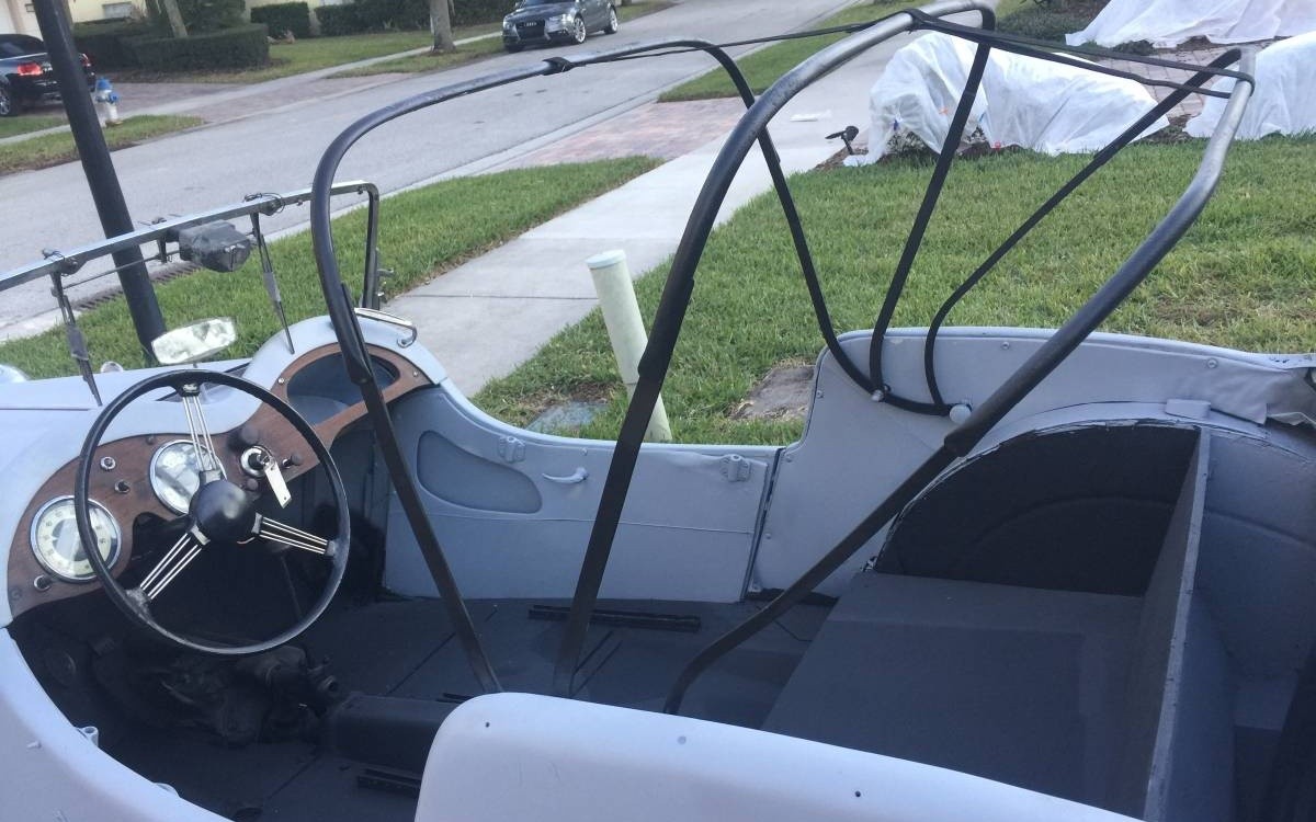 Powering the Roadster is a 4 cylinder overhead cam engine which is said to run sweet and smooth. The seller says that the engine block once had a small, hairline crack, but that it has been professionally repaired and the motor has been flushed and filled with new oil and a new filter. The radiator has also been flushed and pressure tested. The transmission is a 4-Speed with the reverse, third, and fourth gears engaging, but the first and second gears are stuck. All of the original tools are said to be present except for the grease gun, and the car also has a new set of Coker tires. Mileage is claimed to be only 7.981.