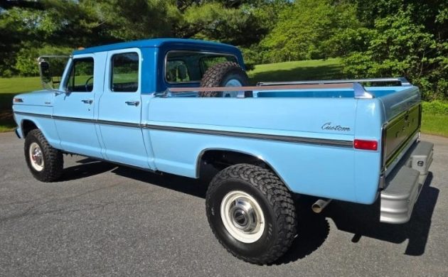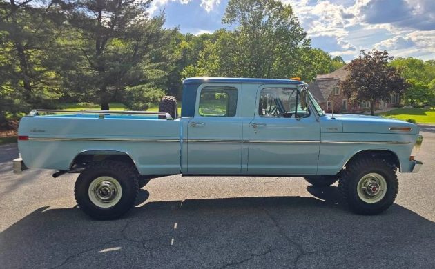 Ford’s Fifth Generation F-Series range graced showroom floors from 1967 until 1972, with our feature F250 rolling off the line during the final production year. The seller believes that its paint combination of Wind Blue and Bahama Blue makes it a 1-of-1 vehicle. That begs the question of why anyone would change or modify the Pickup if it is genuinely unique, but that is a choice that is made by a person willing to spend a lot of money in their quest to build something truly special. The project started with a rust-free Pickup that spent its life as a one-owner vehicle in Arizona. The seller pursued a rotisserie approach, massaging the panels to perfection before applying fresh paint. It appears that they may have replaced many of the vehicle’s original seals and gaskets, adding hide-away running boards for practicality. The trim looks exceptional, as does the glass. The F250 rolls on a set of steel wheels with factory dog dish hubcaps, giving no clues as to what lurks below the surface.