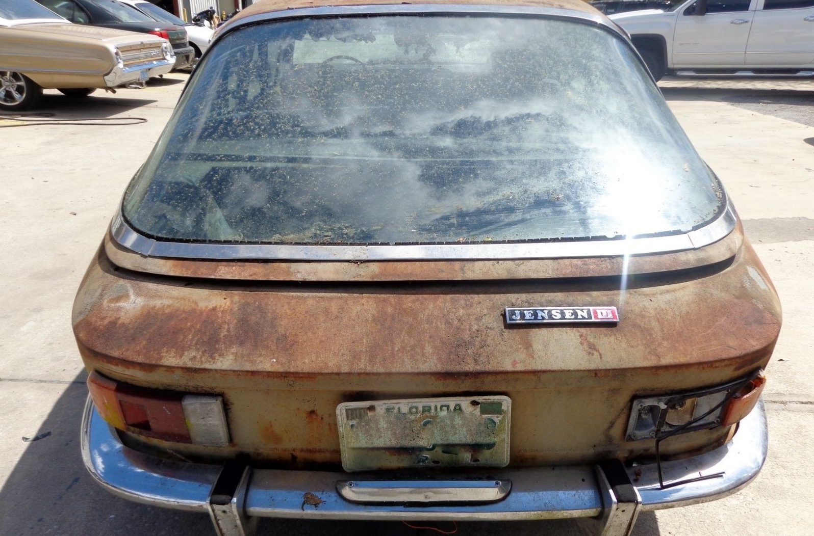 Located in Orange Park, Florida, the Jensen isn’t as rusty as I initially expected. Though it needs full restoration, there’s some good, undamaged bits here, most notably the expansive rear glass clamshell. Bumpers are in need of re-chroming but appear straight; you’ll obviously need to source a new taillight lens to pass inspection (that’s a long ways off). The body is surprisingly straight and while there is evidence of rust-through, it’s not nearly as bad as I was expecting.