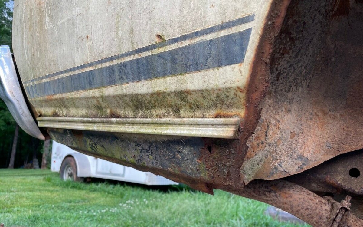 The interior is gutted, completely, with the exception of the instrument panel, steering wheel, and center console. Its current condition does allow a prospective buyer to see exactly what they are acquiring. I stated earlier that the floors are fair, and I’ll stick by that descriptor but they will require some cutting and patching. The good news is that almost the entire interior can be acquired from one of several different online vendors, though the missing seat frames, front and back, could require a bit of a hunt.