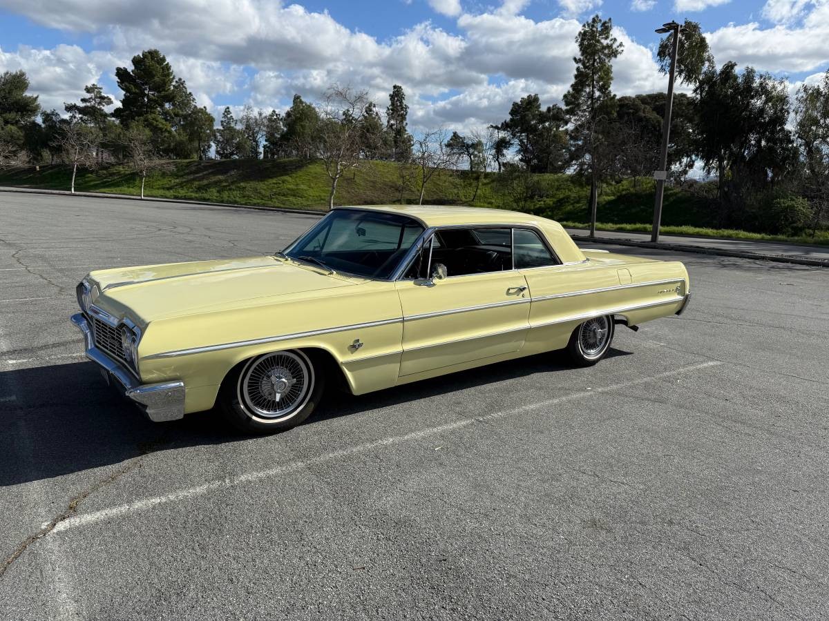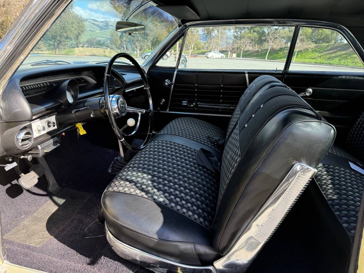 We’ve covered many 1964 full-size Chevrolets here on BF, and why not? The bowtie had the tiger by the tail in ’64, knocking out 2.1 M 1.6 M full-size (B-body) cars. The standard Impala, not including the separate series Super Sport (SS) model, accounted for 690K of that total. Even if only 5% (34,500 units) are still in existence, that’s a lot of cars that can still be covered. Since I already gave away the engine biz, I’ll suggest that about 8,700 B-bodies were powered by one of three different 409 CI engines. Initial observations: The finish looks good – it may or may not be a repaint, there’s no apparent indication of rust or panel damage, the stainless steel side moldings look as if they’ve encountered some parking lot friction (dings), and the suspension has either been lowered or this baby is sittin’ on some very tired coil springs. I’m generally not a fan of wire wheel covers, but I must say, in this instance, they work well.