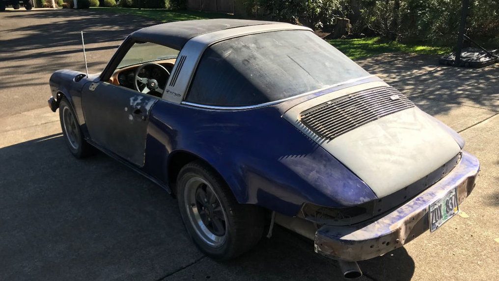 It’s hard to be an armchair quarterback on eBay vehicles, but this 1975 Porsche 911 Targa looks like a reasonably safe bet selling at no reserve. The seller scooped it out of a five-year hibernation in a specialist shop where it was partially disassembled for a restoration that never commenced. The original colors of brown over tan are perfect period shades for a mid-70s 911, and we hope that garish blue paint job is soon a distant memory. Find it here on eBay where bidding has clipped $14K with the auction ending on Friday.