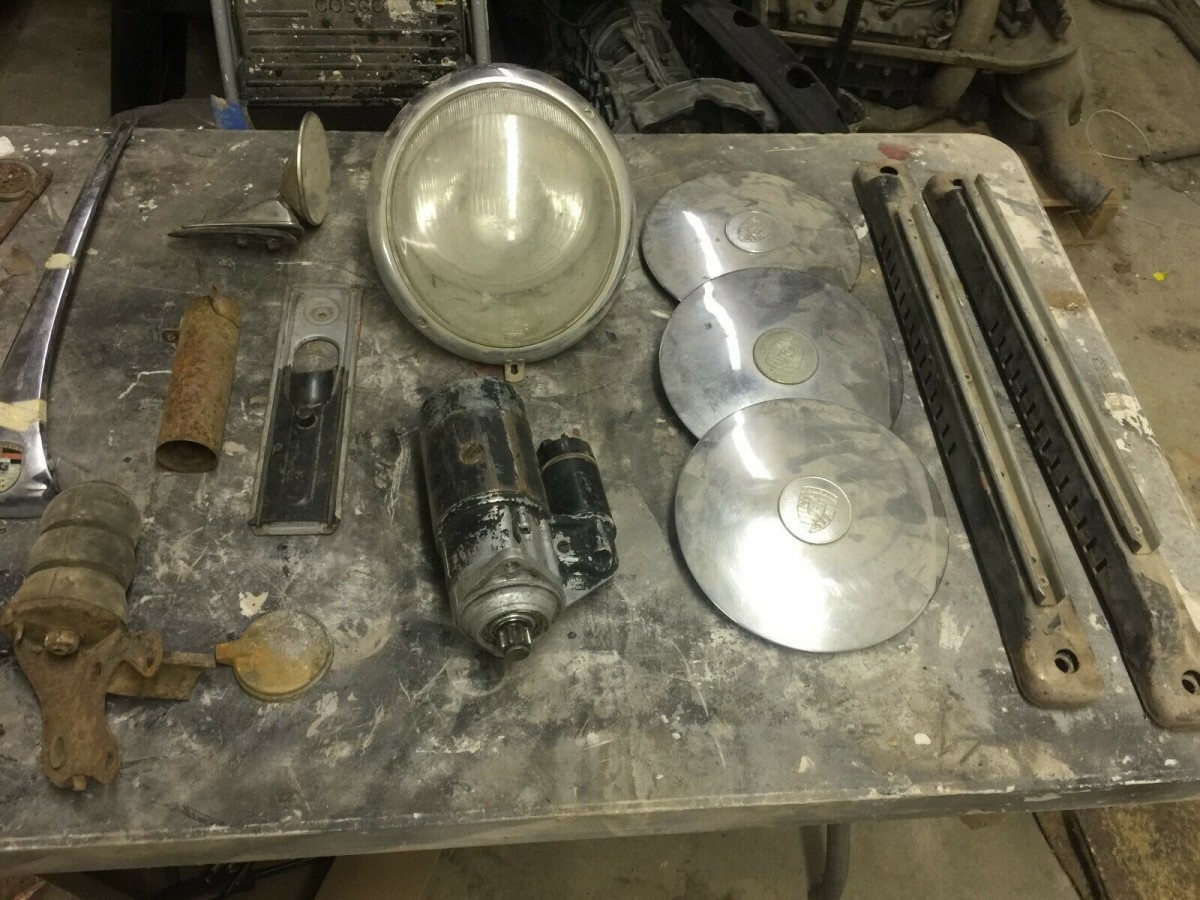 The SC will also come with a clear title and its Porsche Certificate of Authenticity. The seller notes it left the factory with a variety of options, including antenna, trim stripes, loudspeakers, and Dunlop tires. Here we can see at least one of the headlight buckets, three of the four stock hubcaps, what appears to be seat slides/rails, and more odds and ends. The seller notes the transmission, engine case, doors, and wheels are all the correct, date-coded components.