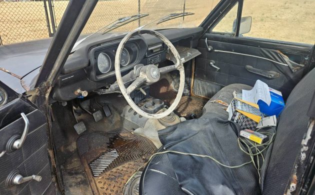 The black paint (primer grey in the bed) is past its prime, and there is surface rust. Has corrosion followed it down to the undercarriage (that would be worth an inspection)? The interior is also rough, as the door panels are wrinkled, and we guess the aftermarket seat cover may be hiding a worn bench seat. The seller has other, more pressing projects and doesn’t have time for this Ford/Mazda, so he/she just wants it “gone.” Is the seller’s asking price a make-it-gone figure?