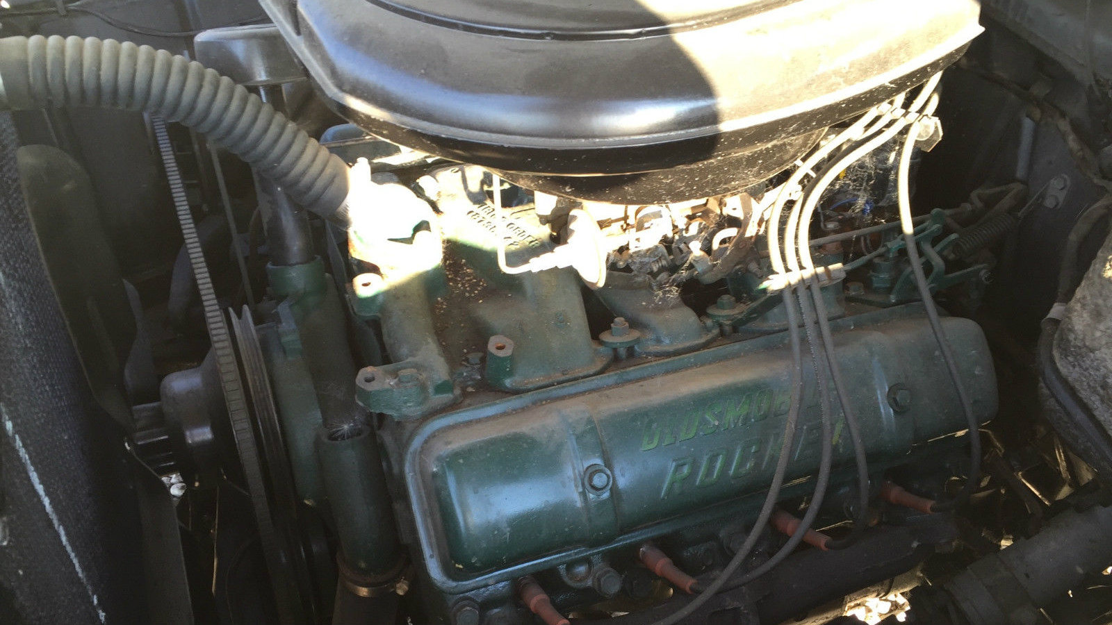 What would an 88 be without a Rocket V8? If this is the original one, it’s a 324 cubic inch version. Not only that, but it’s attached to a four-speed automatic transmission and has the optional air conditioning. I don’t see it currently on the engine, but we are assured it’s included by the seller.