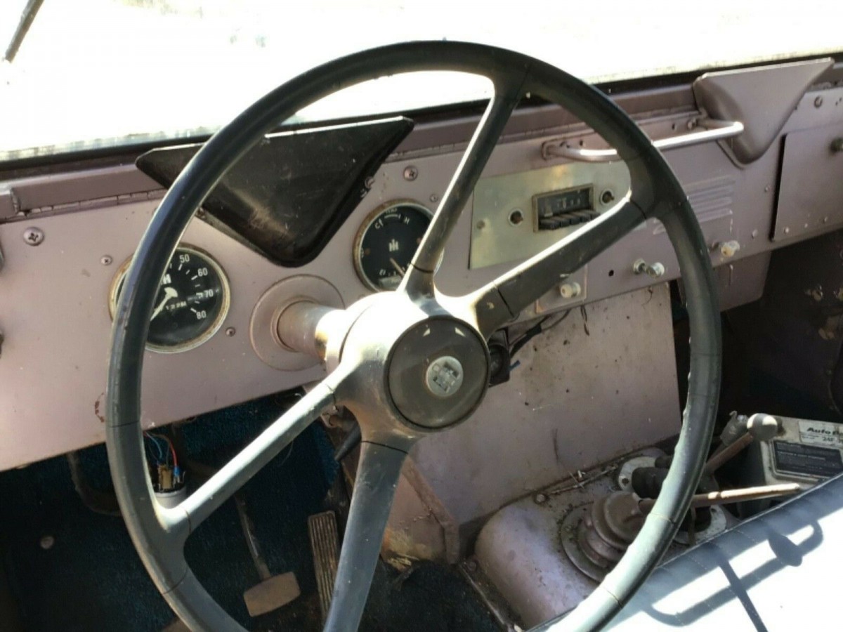 The Scouts weren’t much different than a Jeep inside, featuring minimal equipment and the kind of interior you could hose out if needed. The seller doesn’t offer any details on the health of the floors, but seeing as there’s visible rust in the body, it wouldn’t surprise me if the undersides are crunchy in places. The dash at least retains factory gauges and the steering wheel, and there even appears to be what looks like original radio controls. The gallery photos show a parking sticker of sorts in the back glass with a giant number 93, which could indicate the year the Scout received a parking permit or other registration indicating when it was last used regularly.