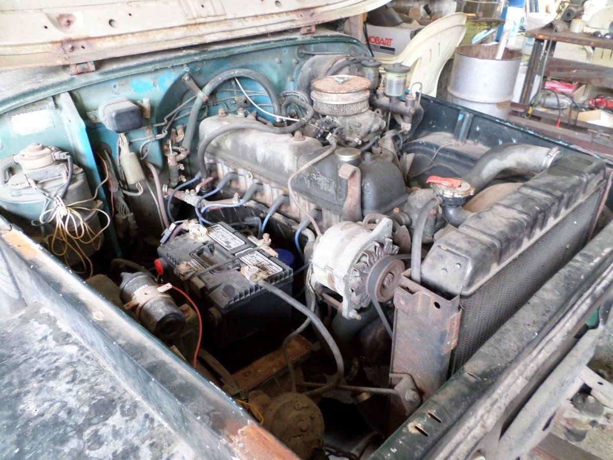 The seller does say the body is rusted; I’m guessing that includes the floors as I’m pretty sure that’s daylight I see below the pedal box. Of course, it could be an optical illusion, but I’ll be the floors aren’t far behind with the body as rusted as it is. The rest of the interior looks acceptable, but smart money says the seats are pretty tired under those covers as well.